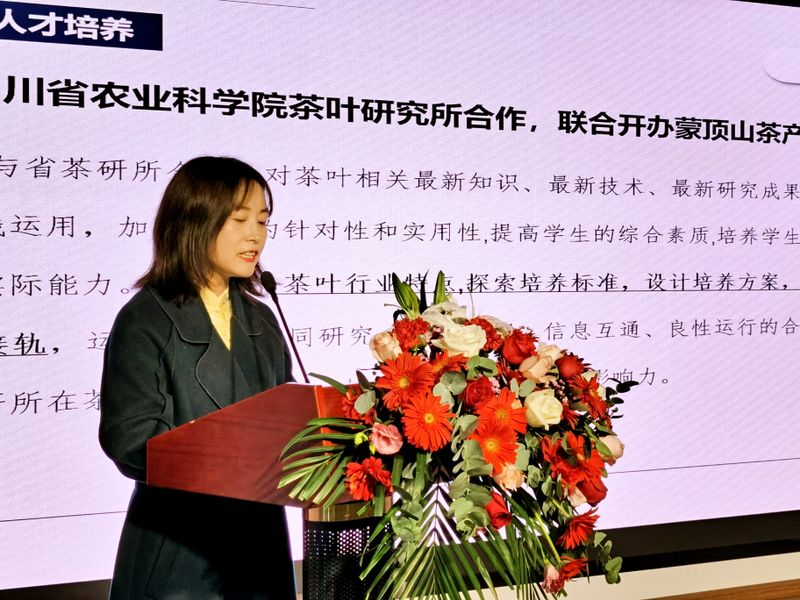 四川省茶研所所长罗凡致辞表示,蒙顶山茶被列为“三山一早”区域品牌,需重点打造,蒙顶山茶产业学院挂牌成立一年来,在茶叶技术技能人才培养、茶文化传播、产品营销及雅安茶叶品牌打造等方面取得到了较显著成绩。经友好协商,我们将牵手太阳成集团tyc234cc,合作共建这一重要平台,将充分利用茶叶所的科研人才队伍及技术成果和雅职院的人才培养、文化传播等优势,在产、学、研、用等方面深度融合,联合开展技术技能人才培养、关键核心技术攻关、传统茶文化挖掘和茶学团队建设等,更好地服务于四川茶产业,为四川茶产业提质增效、转型升级,做大做强提供强有力的科技与人才支撑。
