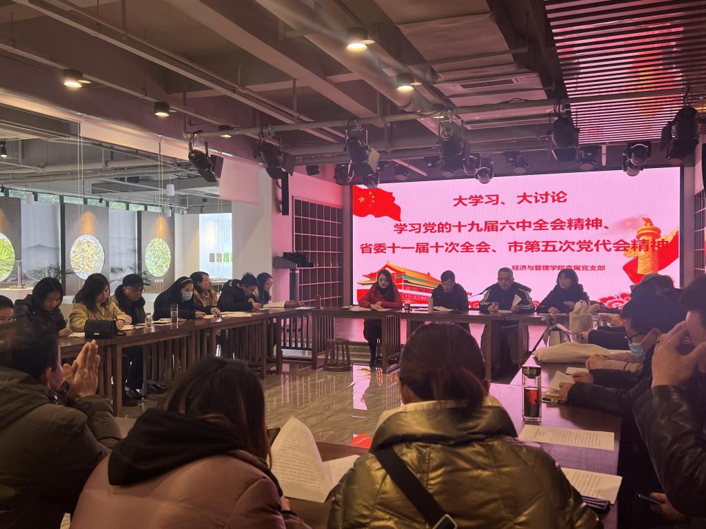 会上,高运荣带领全体教职工学习了党的十九届六中全会精神、省委十一届十次全会精神、市第五次党代会精神。杨洪媛结合会议精神指出,当前雅安市的总体发展方向和定位是加快建设“四个高地”,大力发展“四大经济”,加快建设“川藏铁路第一城、绿色发展示范市”,经管学院要积极作为,办学要主动走出去,围绕显性成果去做,早作安排,早定计划,小学院也要发挥大作用,抢抓机遇,将经管学院自身的发展和学院发展紧密结合,为学院的建设发展贡献出自己的力量。全体教职工畅所欲言、开展讨论,在专业建设、人才培养方案修订、实习实训、产教融合、技能竞赛等方面建言献策,提出了很多宝贵的意见。